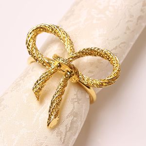 Simples Banhado a Ouro Casamento Bow Guardanapos com Elegante Guardanapos Anéis Chic Natal Holiday Acessórios com Fashionable Tie Clasps