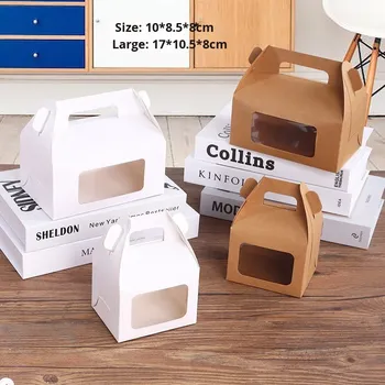 Handmade Portátil Windowed PET Bolo Caixa de Embalagem para Pastelaria Baking Takeaway Carimbado Design para Mousse Tart Nougat Outros Alimentos